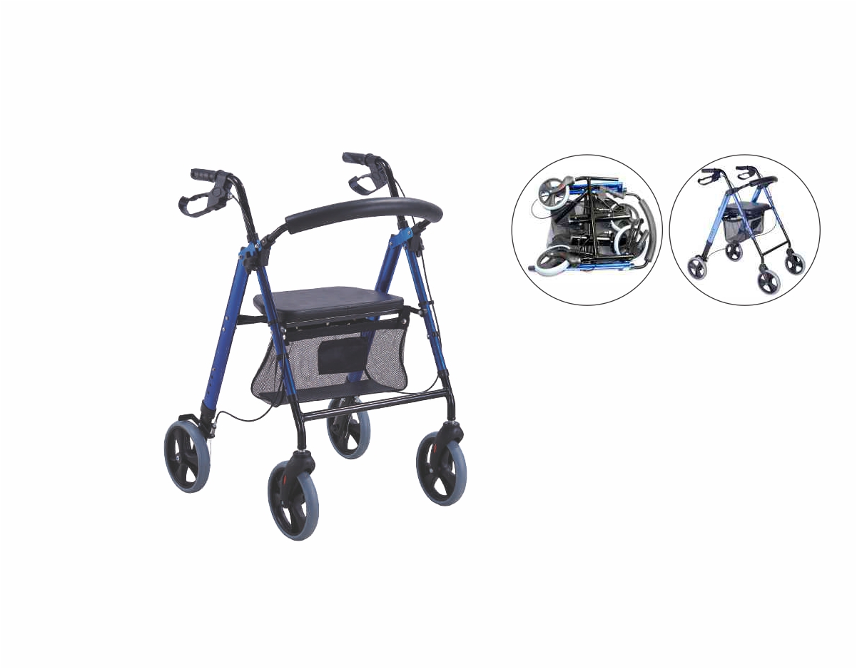 Aluminum Frame with adjustable handle and height. Soft PVC seat and handle grips, with break system.