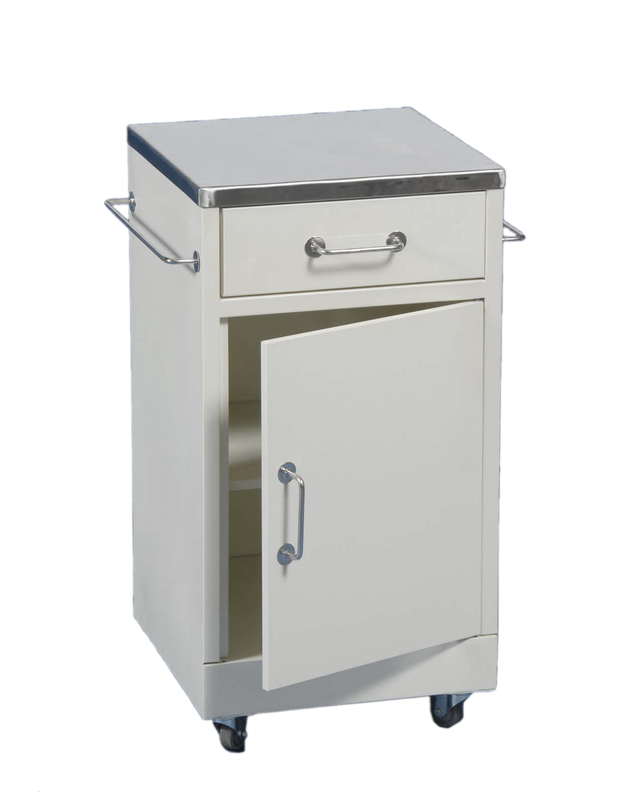 Bedside Locker Steel Type (1 drawer, a storage compartment with a door, towel rail & Stainless-steel top)