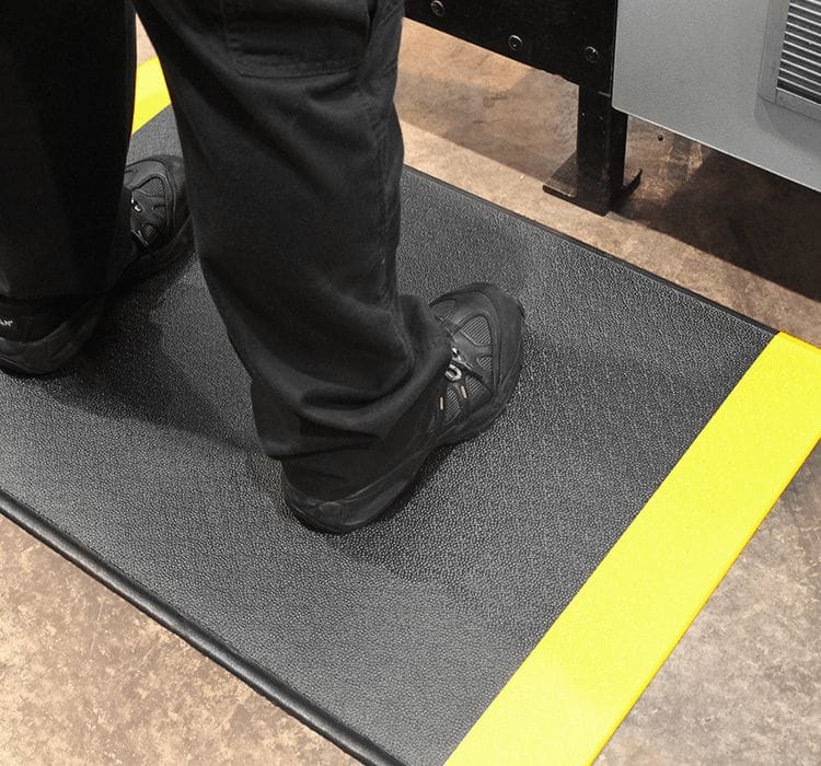 These durable, yet very comfortable mats are manufactured from 100% closed cell PVC foam, providing the right balance of underfoot cushioning and support, while encouraging healthy circulation. Thereby increasing productivity and ultimately reducing pain. Orthomat Safety has a bright yellow, bevelled edge, safety border of 100mm in width