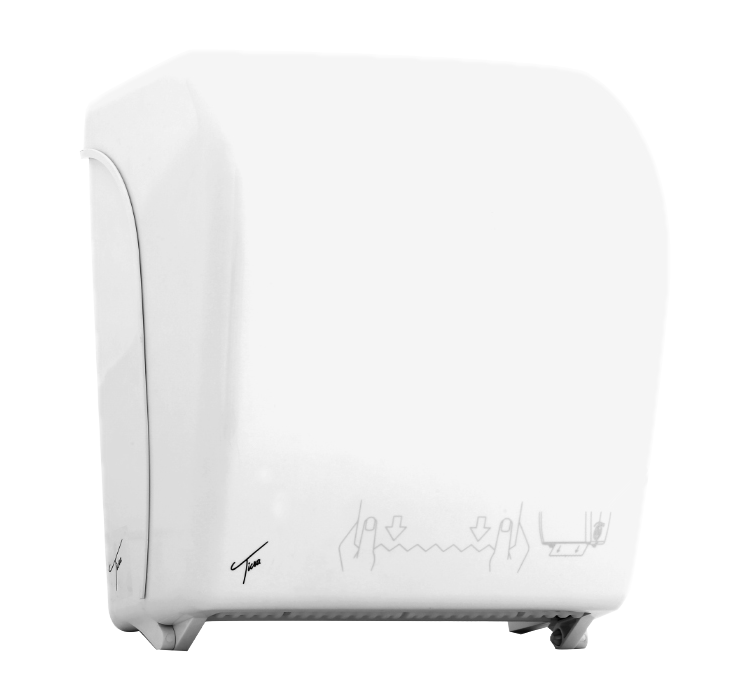 This is a manual dispenser, but you don’t touch the dispenser, only the paper