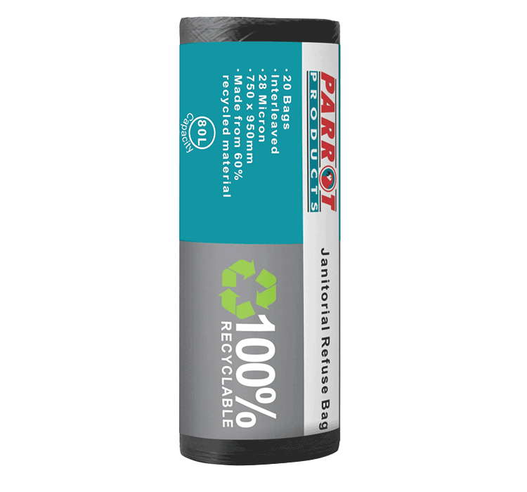 Our Janitorial Refuse Bags are designed to handle tough waste disposal while minimizing environmental impact. These durable bags are made from 28-micron thickness for extra strength, ensuring they can hold large volumes of waste without tearing. Crafted from 60% recycled material and 100% recyclable, they provide an eco-friendly solution for all your janitorial needs. Interleaved for convenience: Easy to separate and use, ensuring quick, efficient bag changes.