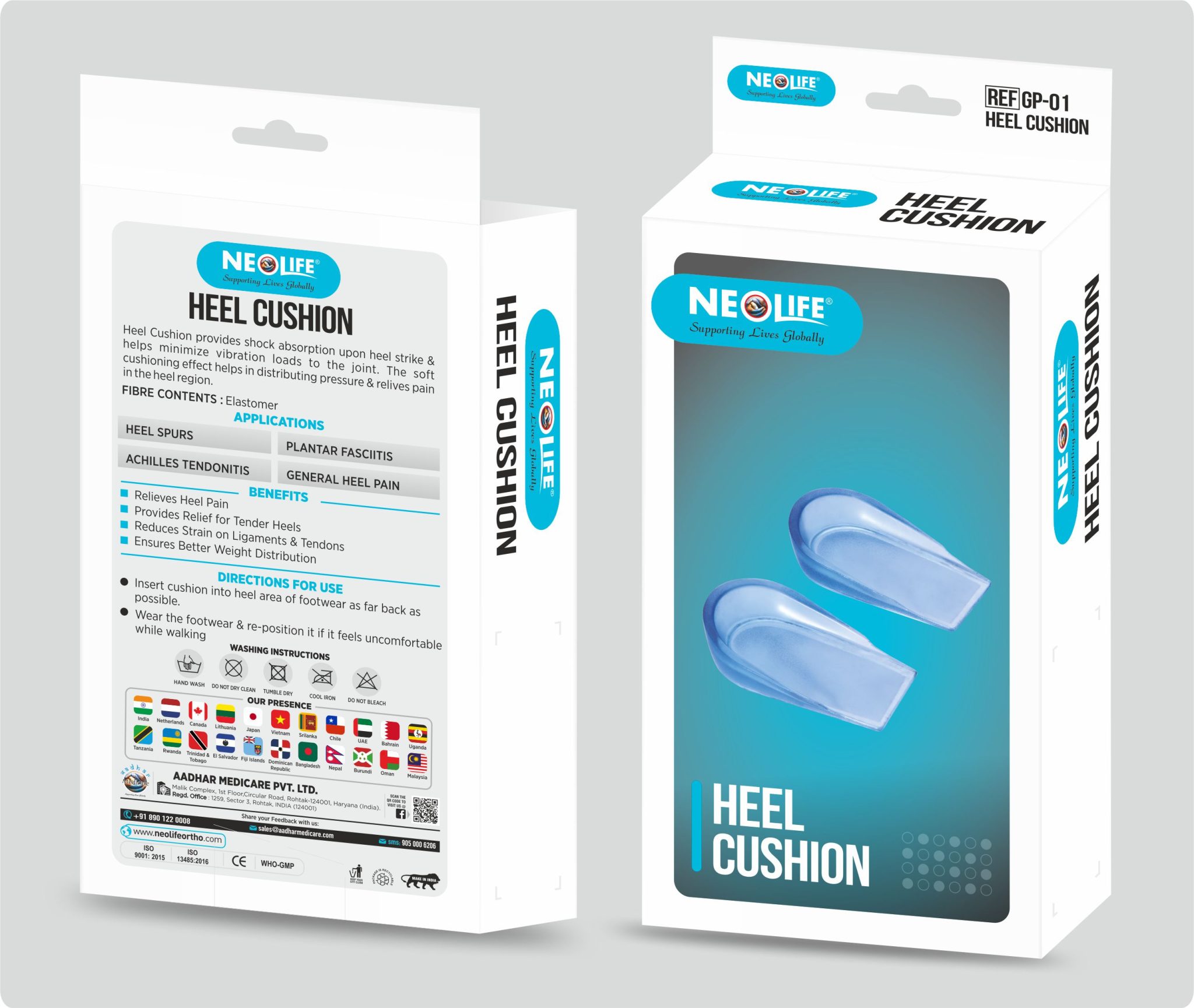 Heel cushion provides shock absorption upon heel strike and helps minimize vibration loads to the joint. The soft cushioning effect helps in distributing pressure and relieves pain in the heel region